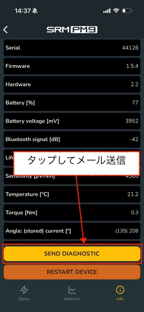 スマホアプリとPM9を接続し、メールで診断画面をお送り頂くことで、お客様のPM9の状態をコチラでも確認することが出来ます。
