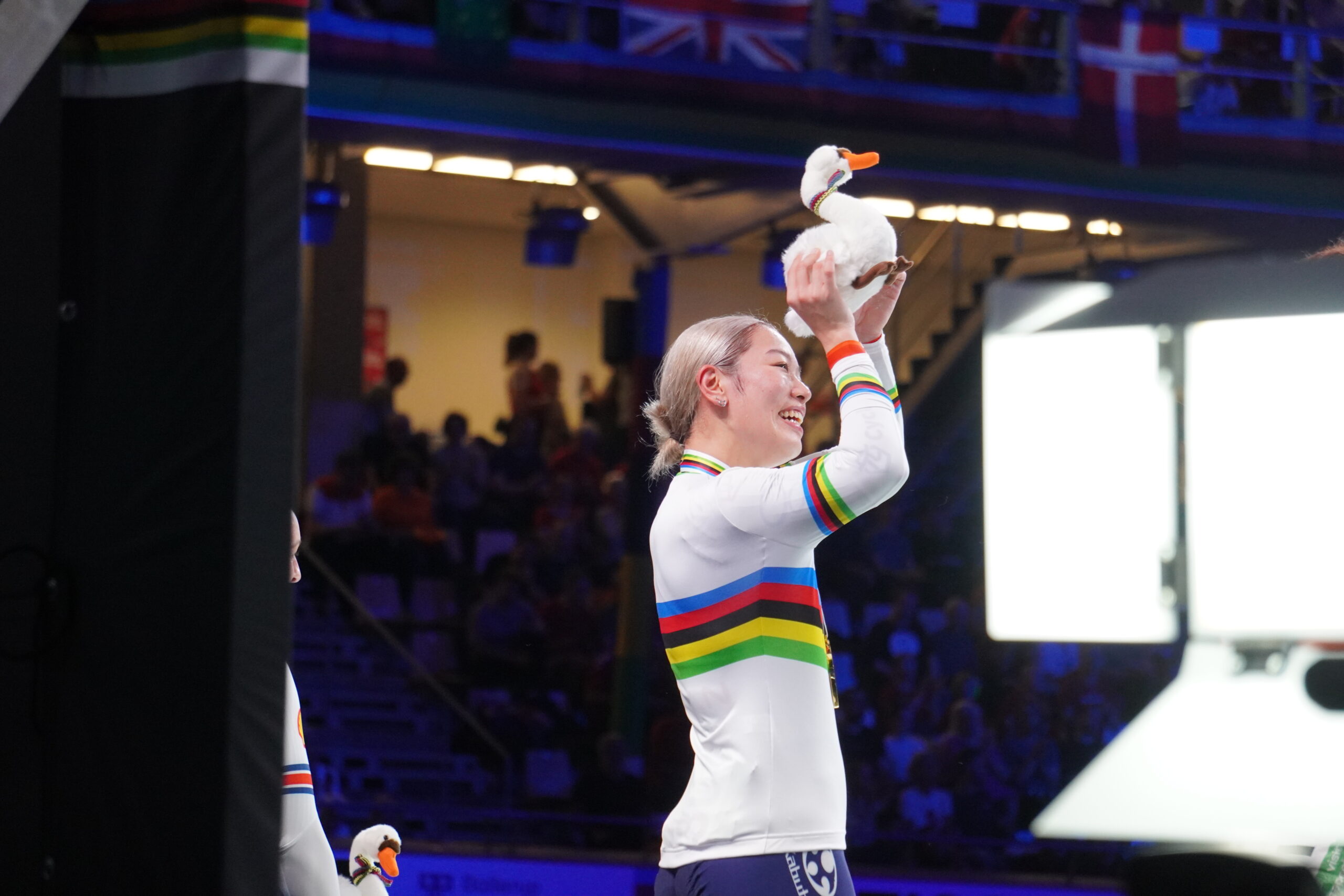 この大会は日本勢も大活躍。まずは窪木一茂選手がスクラッチで世界チャンピオンになりました。さらに男女ケイリンで山崎賢人・佐藤水菜選手がそれぞれ世界チャンピオンに輝きアルカンシェルを獲得しました。 日本勢の世界チャンピオン獲得は何と37年ぶり。