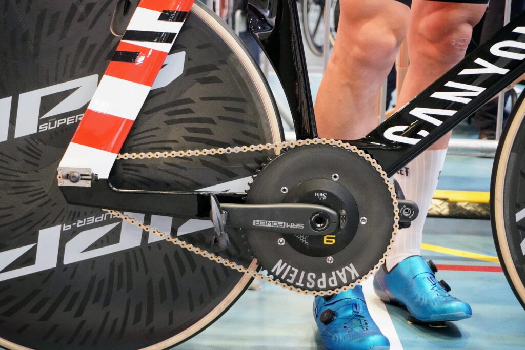 長身のTPアメリカチームのバイク。クランク長は何と155mm!