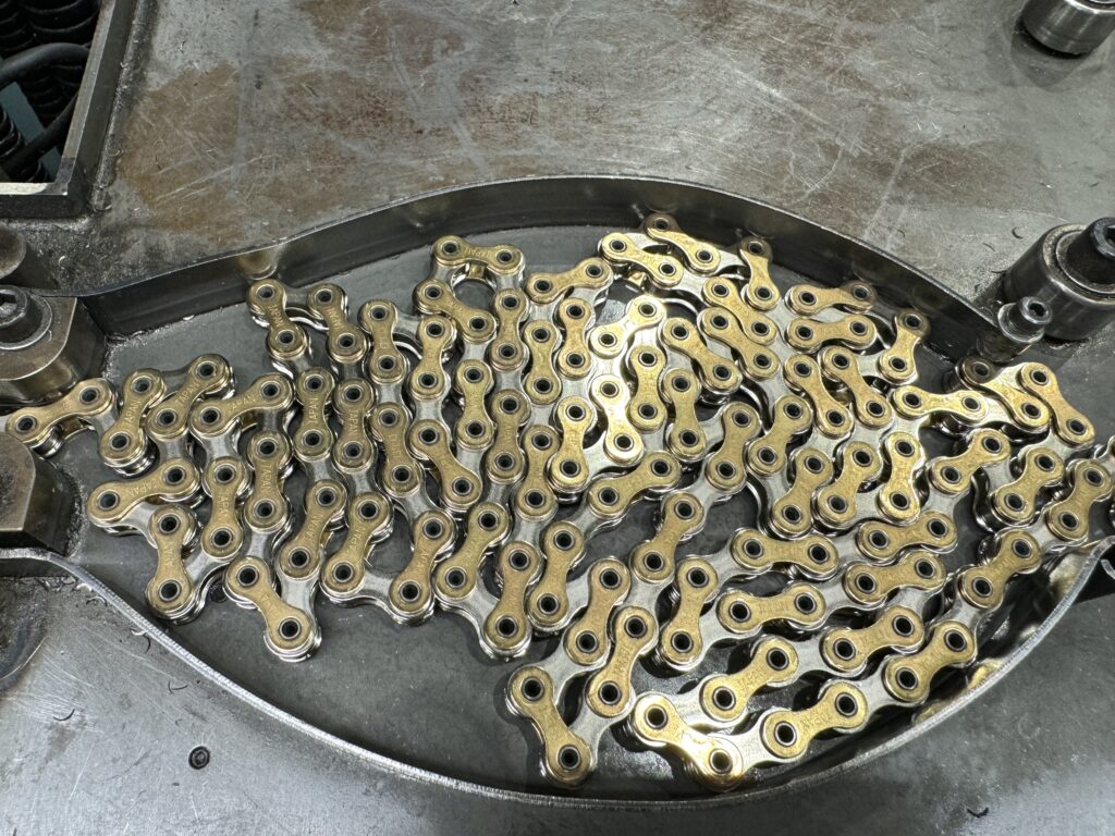 世界最速チェーン開発にあたって一番の開発目標は”世界一摺動抵抗(こすれることで起こる抵抗)を少なくすること”でした。